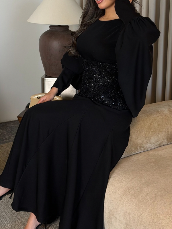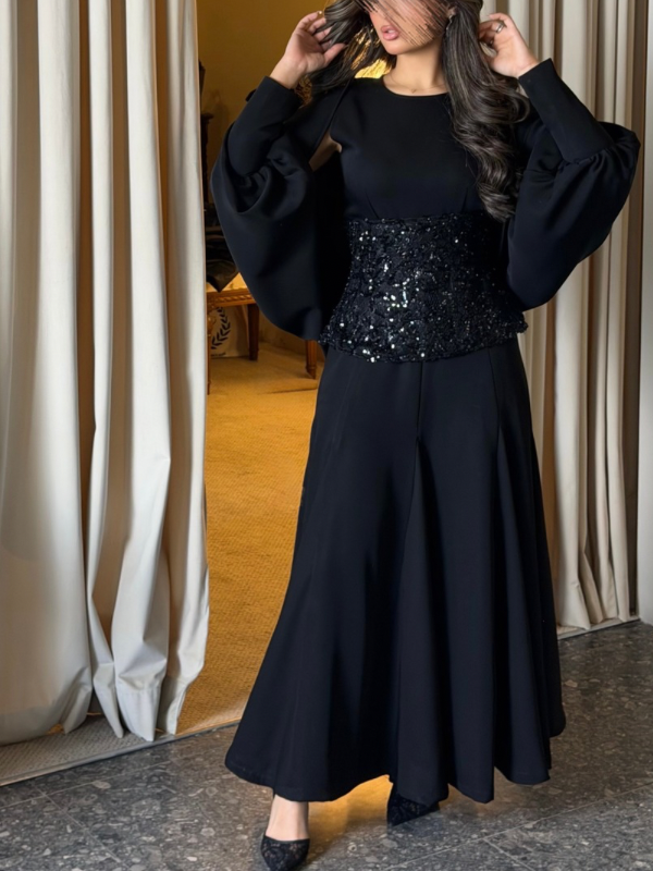 بدله من ٣ قطع ( نفنوف وجاكيت و كورسيه ) باللون الاسود ، الكورسيه شك