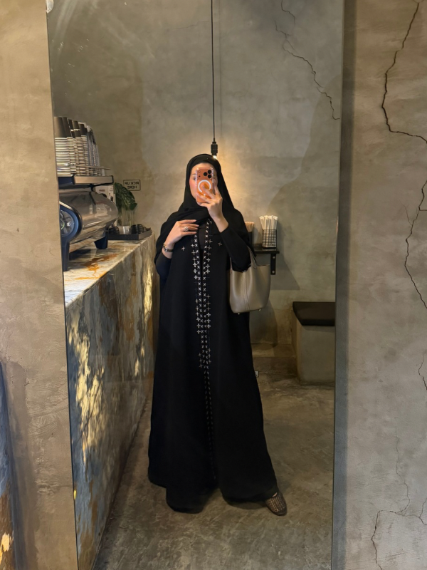 • عباية صيفية انيقه بأستخدام قماش اكريب باللون الاسود  ..