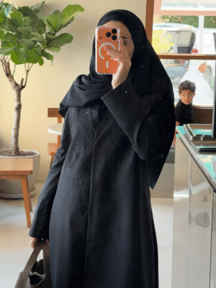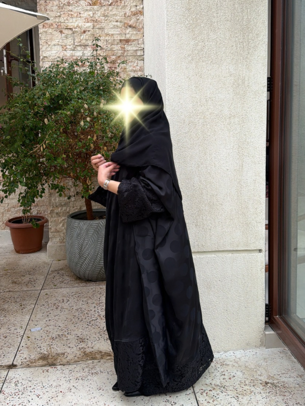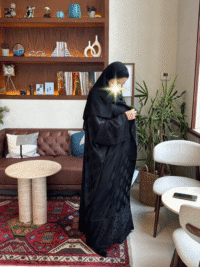 - عباية صيفية انيقه بأستخدام قماش الحرير المنقط باللون الاسود ..